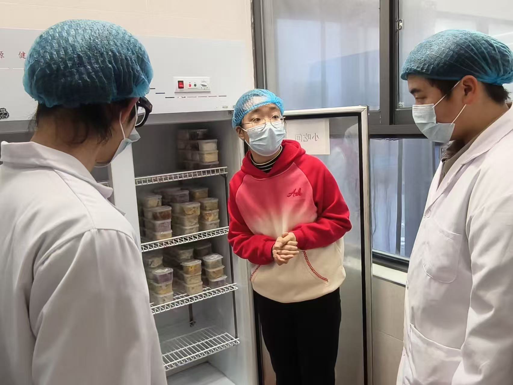 活动中,工作人员首先向师生代表介绍了食堂后厨的整体布局和功能分区,随后依次参观了食材存储区、粗加工间、烹饪区、备餐间、餐具消毒区等关键操作区域。在食材存储区,调味品、干杂等食品整齐码放在通风货架上,各类标识清晰规范;冷藏柜内生熟食材严格分区存放,让师生们直观感受到后厨标准化、规范化的管理模式。