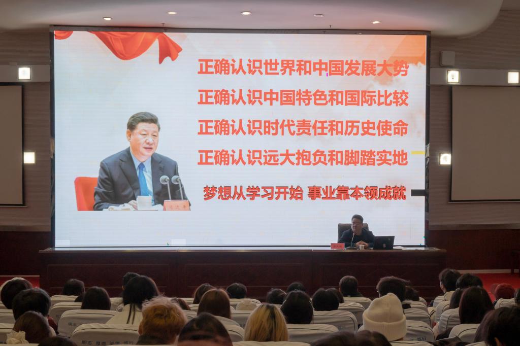讲座中,余老师围绕三个核心内容展开系统阐释:一是深刻认识党的二十届四中全会的重大历史意义和现实指导作用;二是准确把握“十五五”时期在基本实现社会主义现代化进程中的重要地位;三是坚持和加强党的全面领导,凝聚推进中国式现代化的磅礴力量。他强调,新时代青年要树立正确的世界观、历史观、大局观和角色观,清醒认识当前国际国内形势的深刻变化,自觉将个人成长融入国家发展大局。他勉励学生干部要真学真信筑牢信仰之基,勤学笃行夯实专业之本,知行合一勇担时代之责,以奋斗逐梦、以团结聚力,走稳走实高质量成才之路。