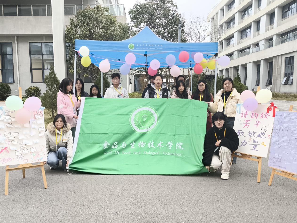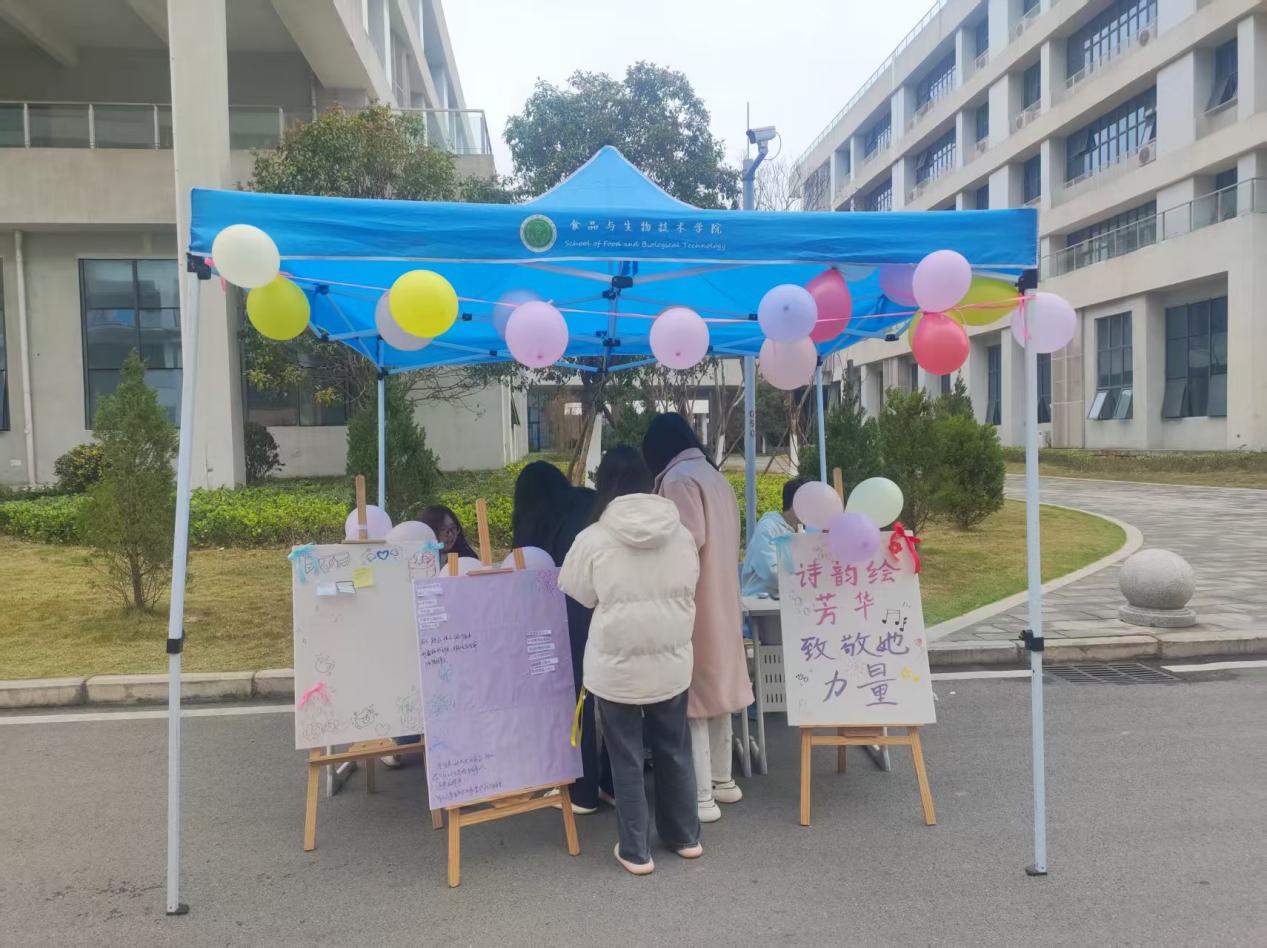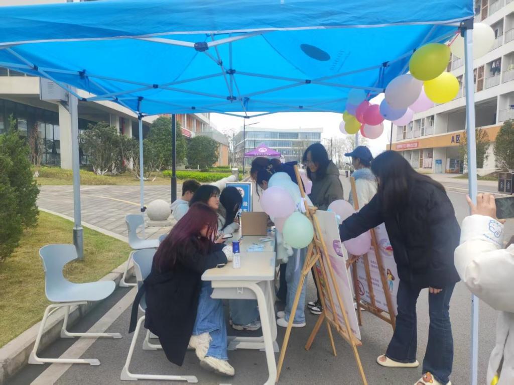 为关注女性心理健康,助力女生发现自身独特光芒,3月8日,我校春晖社区食品与生物技术学院在B5教学楼与E2宿舍楼之间举办“诗韵绘心筑芳华,暖心守护她力”心理健康教育主题活动。