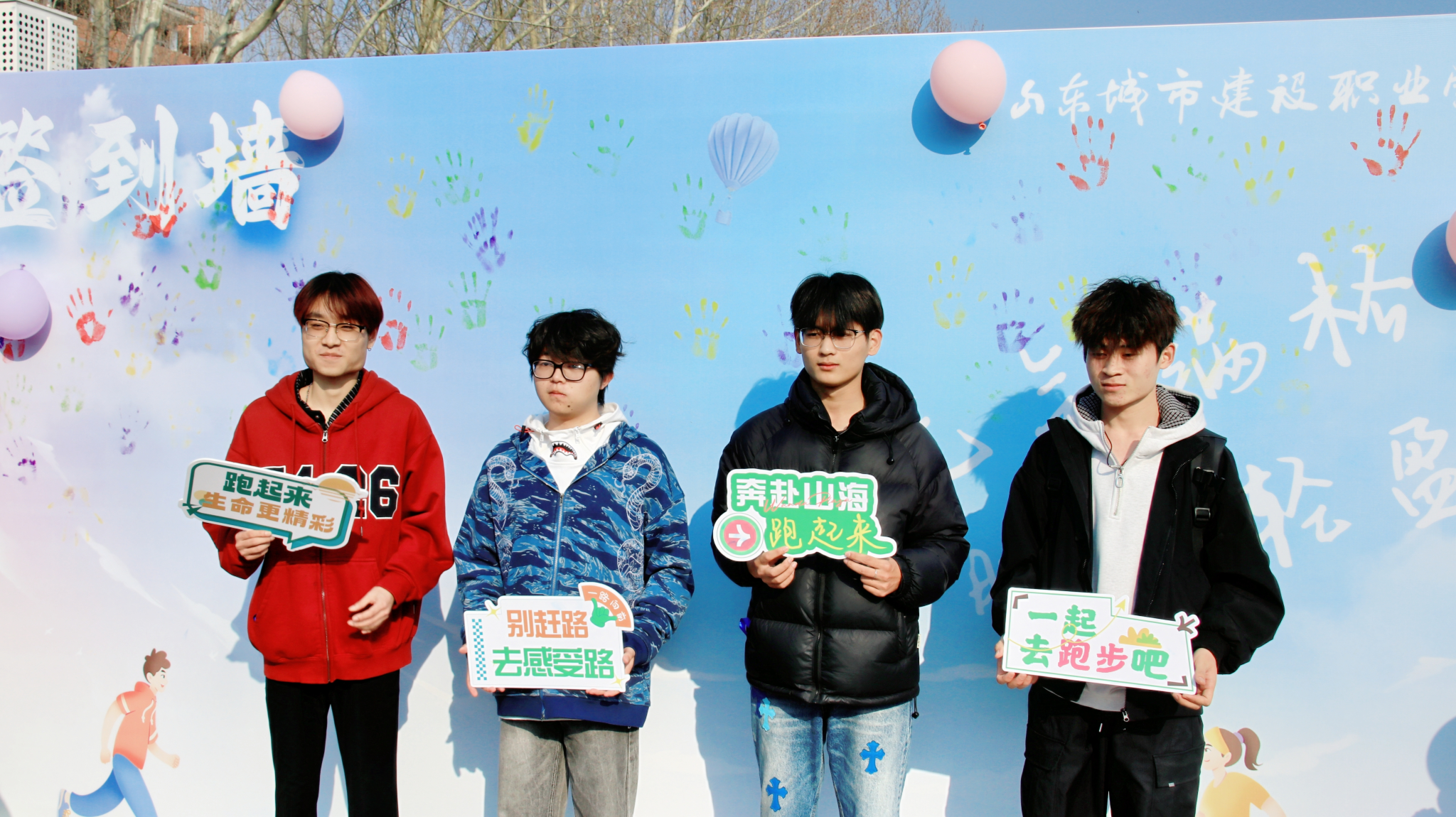 活动伊始,同学们以创意“掌印签到”的形式,用手指画颜料在签到墙上留下独特的印记,并在签到墙前合影留念,定格青春瞬间。随后,全场师生在基础教学部体育老师指导的热身活动中迅速进入运动状态,为即将开始的环校跑做好充分准备。主持人详细说明了活动路线、跑步规则及安全注意事项,特别强调了“安全第一、量力而行”的原则,确保活动能够安全有序地进行。