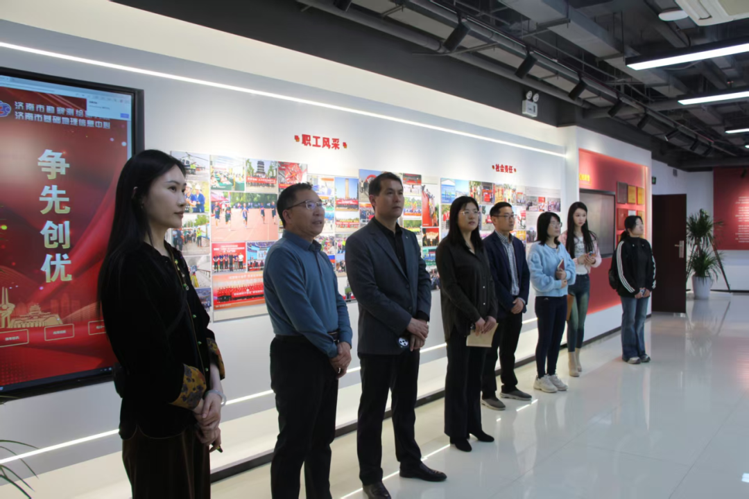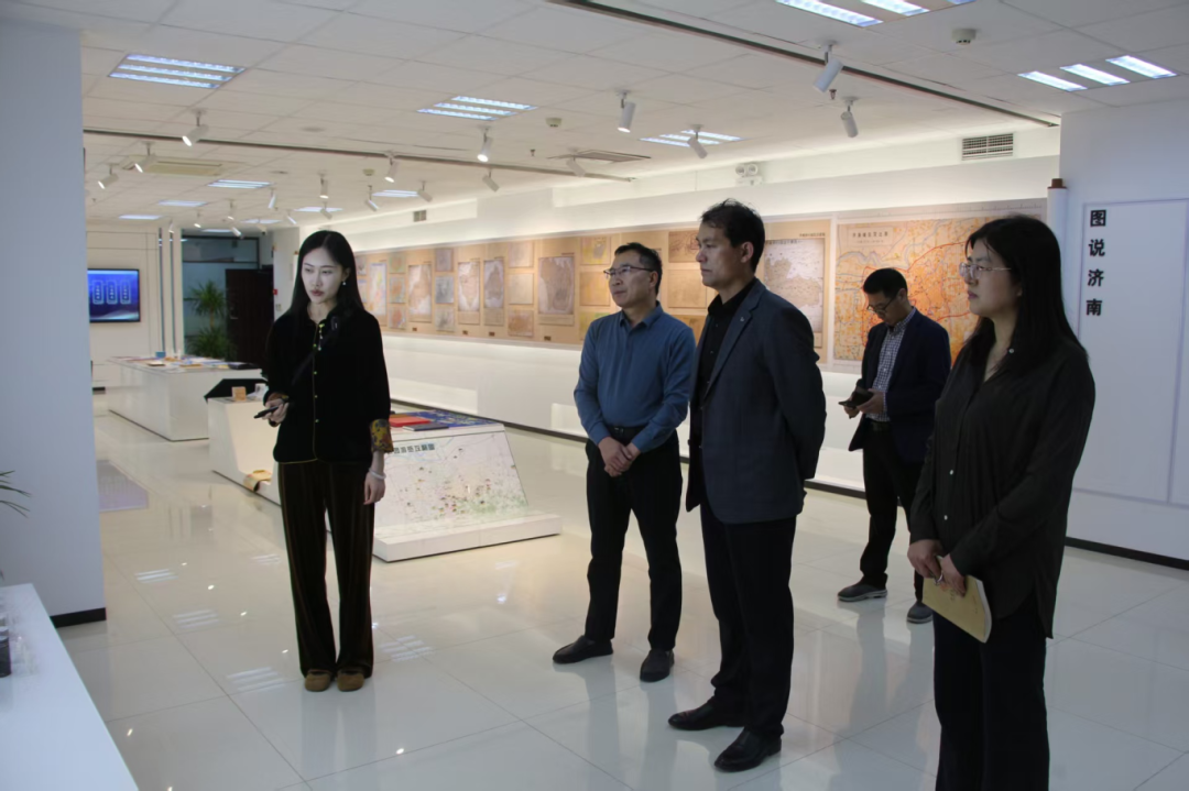 会前,济南市勘察测绘研究院领导陪同学院师生参观了院史馆与地图文创展厅。通过丰富的图文资料和实物展品,企业的发展历程、技术成果及社会贡献生动展现,进一步加深了师生对行业前沿动态和企业文化的认知。