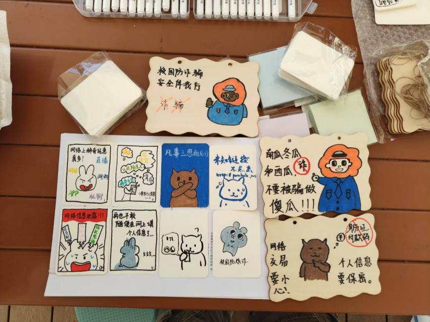 活动现场,在“反诈知识问答”环节,同学们面对各种诈骗场景下的提问冷静思考、认真回答,充分体现了同学们对于反诈知识的熟练掌握;在“反诈作品创意”环节,同学们手握画笔,发挥想象力,手绘反诈书签、明信片、木板绘画等创意作品,使用创新的形式,让反诈理念深入人心。