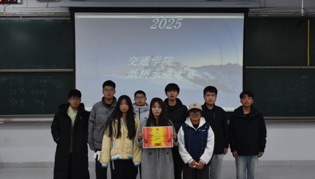 承重测试环节随着砝码逐级增加,纸桥在静默中接受考验,单薄材质与沉重负荷形成强烈对比,每一次成功加载都引来现场阵阵掌声。经过评比,智慧交通2025-4班获一等奖,智慧交通2025-3班获二等奖,交通运输2025-1班获三等奖。