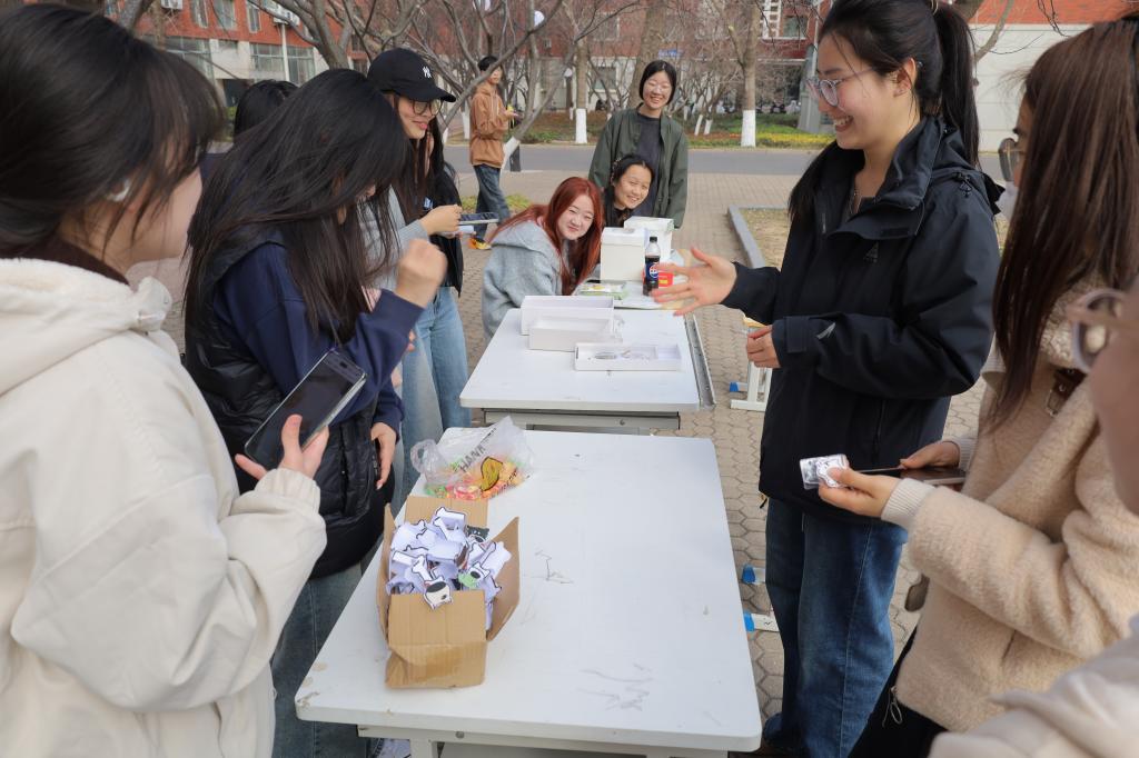 活动现场设置了三个互动环节。在“心事投递”环节,同学们将烦恼与困惑写在便签上,通过随机抽取他人写下的回应,在文字交流中获得理解与启发。“寄给未来的自己”明信片慢递环节鼓励同学们写下自己的心愿与期许,通过文字梳理情绪、寄托希望。趣味猜拳游戏拉近同学们之间的距离,大家在互动中释放压力、增进交流。