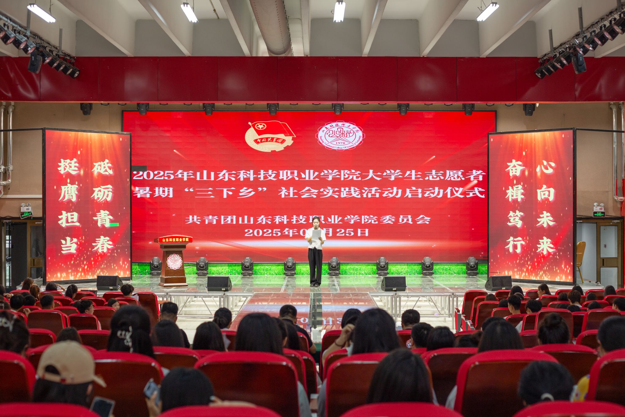 为引领广大青年学子深学笃行习近平新时代中国特色社会主义思想,全面贯彻党的二十大精神,在社会实践的“大思政课”中坚定信念、锤炼本领、奉献青春,6月25日下午,学校举办2025年暑期“三下乡”社会实践启动仪式,各系部实践团队指导教师及学生代表约200人参加活动。