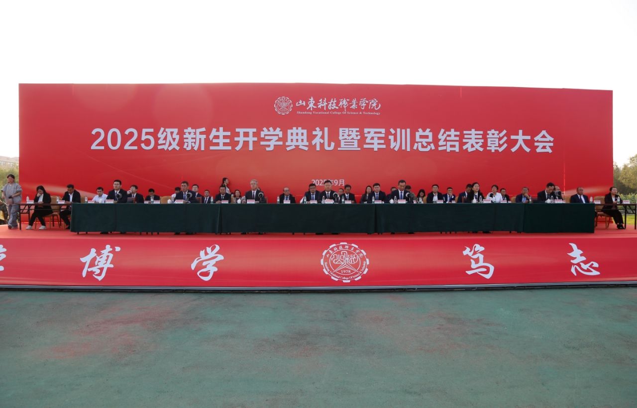 秋风送爽,丹桂飘香。9月24日下午,山东科技职业学院2025级新生开学典礼暨军训总结表彰大会在学校田径场顺利举行。学校党委书记郑德前,党委副书记、校长刘福玉等班子成员出席大会,学校各部门党政负责人及全体辅导员参加大会。典礼由刘福玉主持。