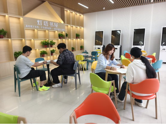 除核心服务窗口外,大厅还精心打造了多元育人空间。“灯塔书屋”藏书丰富、环境静谧,既是学生课后阅读、自主学习的“充电站”,也是交流思想、碰撞灵感的“小天地”;24小时售卖机则提供零食、饮品等便捷服务,贴心关照学生的日常生