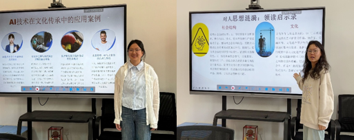 此次活动以《智人之上》为引,聚焦AI时代的人文思考。活动伊始,一段关于人工智能发展的科普视频激发了同学们的浓厚兴趣,学生领读《智人之上》之后,现场五组同学分别围绕享了在AI浪潮下如何坚守和重塑个人理想信念、AI与教育者角色的关系、AI对传统价值观的影响等角度展开热烈探讨。丁玥娇等同学也在分享中表示,作为师范生,她们将正确把握AI在教育中的辅助定位,充分发挥主观能动性,让知识的传递更高效、更温暖。