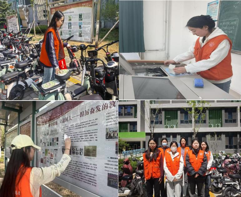学生入党积极分子以躬身实践诠释先锋本色,在校园志愿服务中彰显青春担当。在“一站式”学生社区共享单车规整行动中,他们既是“秩序守护者”,更是文明理念的传播者,将简单的整理工作升华为文明倡导的实践课堂;“黑板净颜”服务中,每一处细致擦拭都彰显着对教学环境的用心守护;宣传板清洁时,专注的身影让校园文化窗口焕发新彩。这些看似平凡的志愿行动,生动诠释了“为人民服务”的宗旨内涵。他们以点滴行动汇聚成文明的暖流,既美化了校园环境,更传播了“奉献、友爱、互助、进步”的志愿精神,成为校园文明建设的活力引擎与红色先锋。