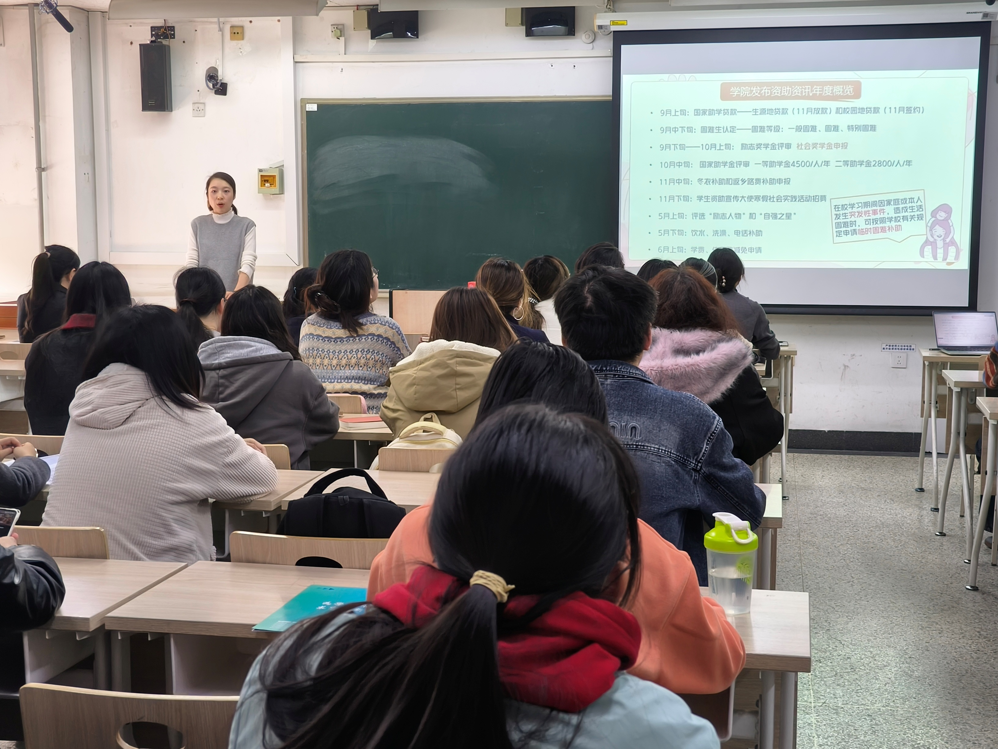 最后,王亚楠以 “份份奖助金,浓浓关怀情” 为题作总结发言,寄语同学们善用奖助资源:深耕学业、勤俭规划、全面提升综合素质,同时绷紧安全之弦,警惕诈骗陷阱、守护个人信息与财产安全,在感恩中奋进,于成长中担当。