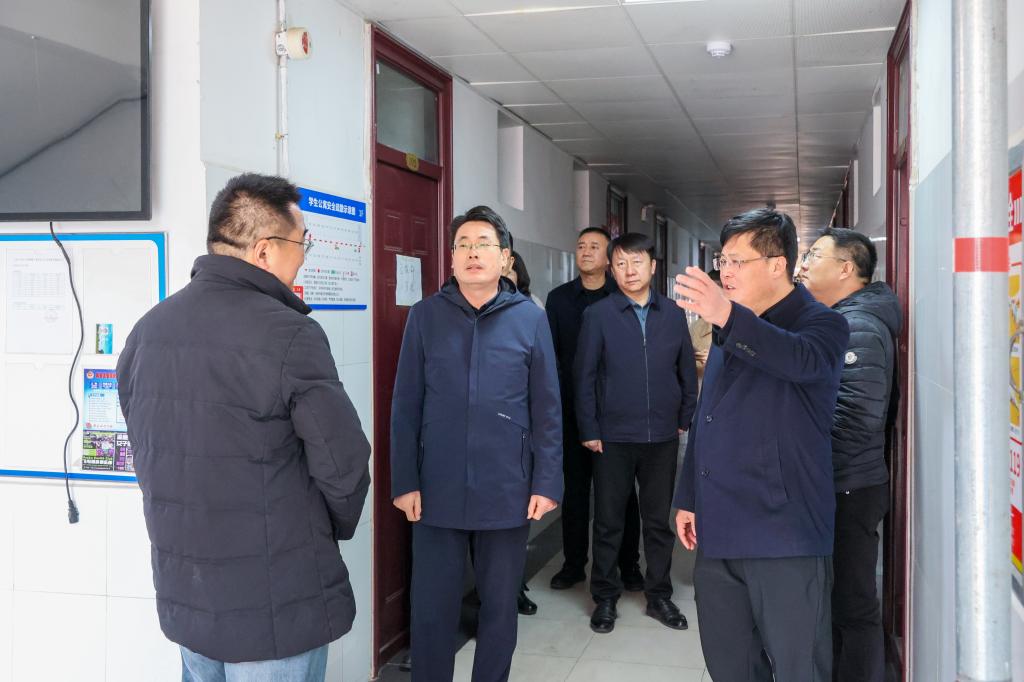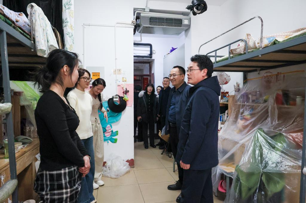 王维一行实地查看了学生宿舍、食堂、辅导员值班室、消防配电室等场所,检查学生宿舍水电暖、餐饮保障及各类生活设施运行、交通安全等各项保障工作落实情况。