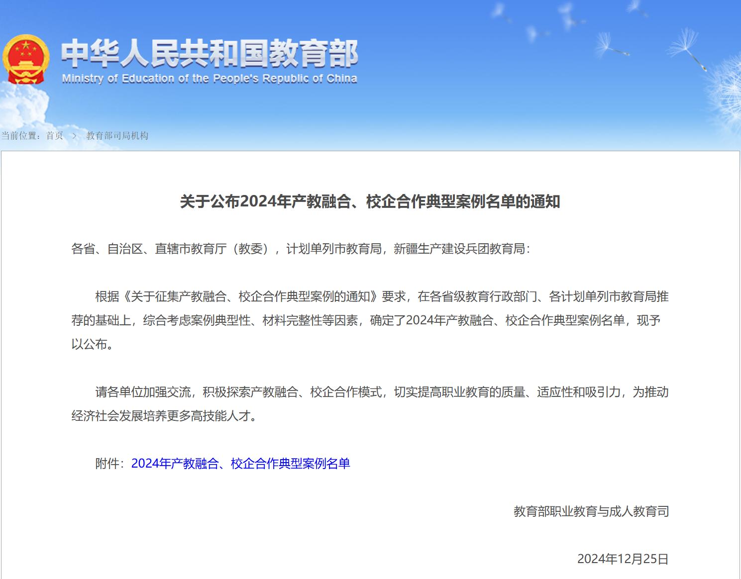 学院产教融合案例入选教育部产教融合、校企合作典型案例
