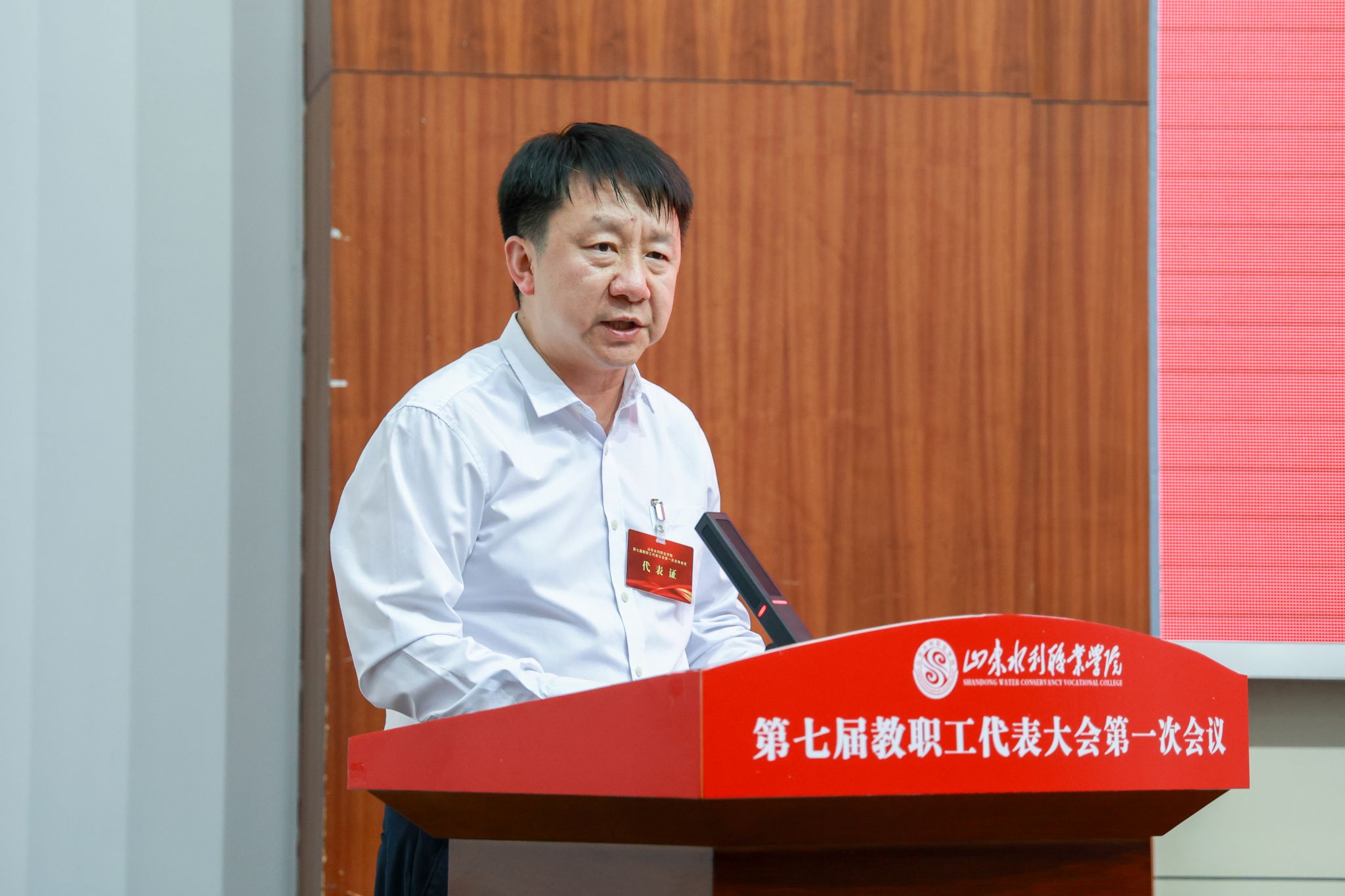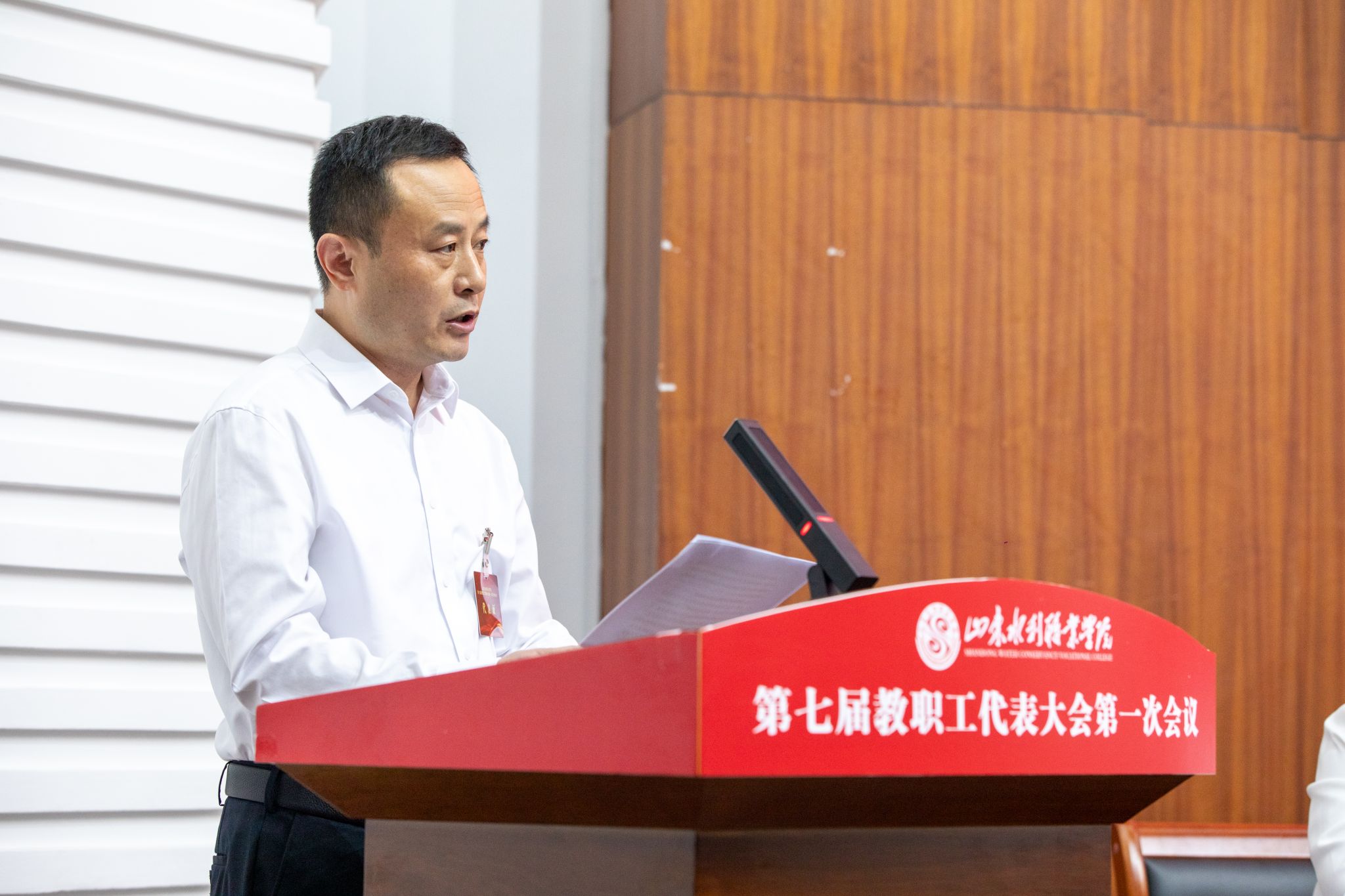 财务处(资产处)处长陶书伟作学院财务工作报告,办公室(外事办公室)主任王纬作提案工作报告,第七届教代会执行委员会及专门委员会建议名单以书面形式下发各位代表。