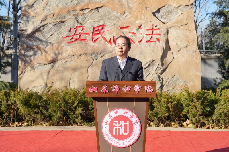 山东协和学院举办法治联建交流会暨民法典广场启用仪式