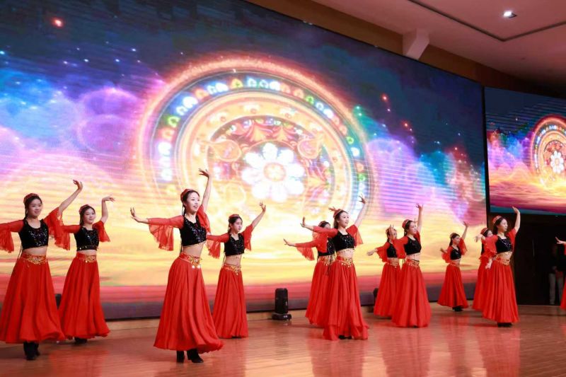 晚会分为“龙马精神,寄语新程”“骏马迎春,踏梦而来”“万马奔腾,逐梦新元”“马到功成,万象更新”四个篇章。精彩绝伦、生龙活虎的非遗舞龙舞狮表演《龙腾狮跃庆元旦》拉开了晚会的序幕。歌伴舞《青春燃未来》用歌舞交织展现协和学子的青春担当;流行歌曲《今宵赴新程》旋律悠扬,让全场沉浸在对协和美好未来的憧憬与期盼中;古典舞《莲鼓越歌行》展现出东方古典艺术的空灵意境与生生不息的文化气韵;啦啦操《逐梦节拍》用热情的音符和真挚的肢体语言,激励协和青年们珍惜青春正当时,逐梦扬帆行远道;民族舞《花儿》活力四射、热情奔放,书写出属于协和人斑斓灿烂的诗篇。晚会在合唱《党建领航·天耀中华》中圆满落下帷幕。