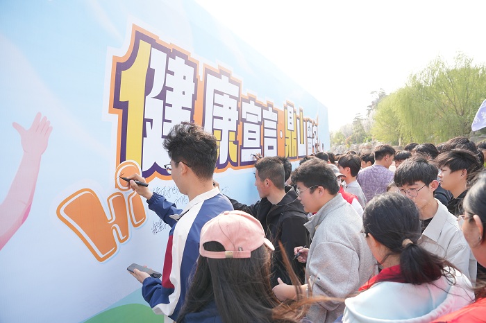 基础部副主任黄磊介绍了活动流程与安全注意事项。本次活动设置四个环节:“健康宣言·鼎山留名”打卡区,同学们写下健康誓言,共同打造校园健康文化阵地;“青春留影·鼎山拾光”摄影大赛,用镜头定格运动风采与校园美景;“青春定格·集体快闪”活力上演,文艺社团带来动感表演,点燃现场氛围;“健康随行·知识相伴”闯关区,围绕运动防护、膳食营养等开展趣味答题,学生们在互动中学习健康知识、收获惊喜礼品。