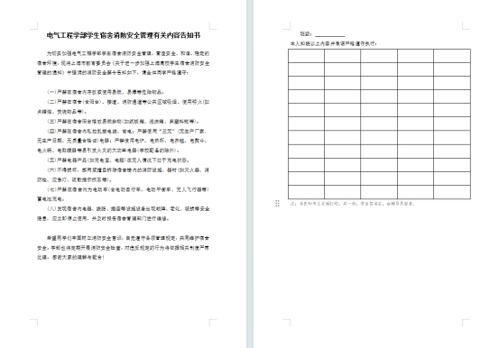 电气工程学部学生宿舍消防安全管理有关内容告知书