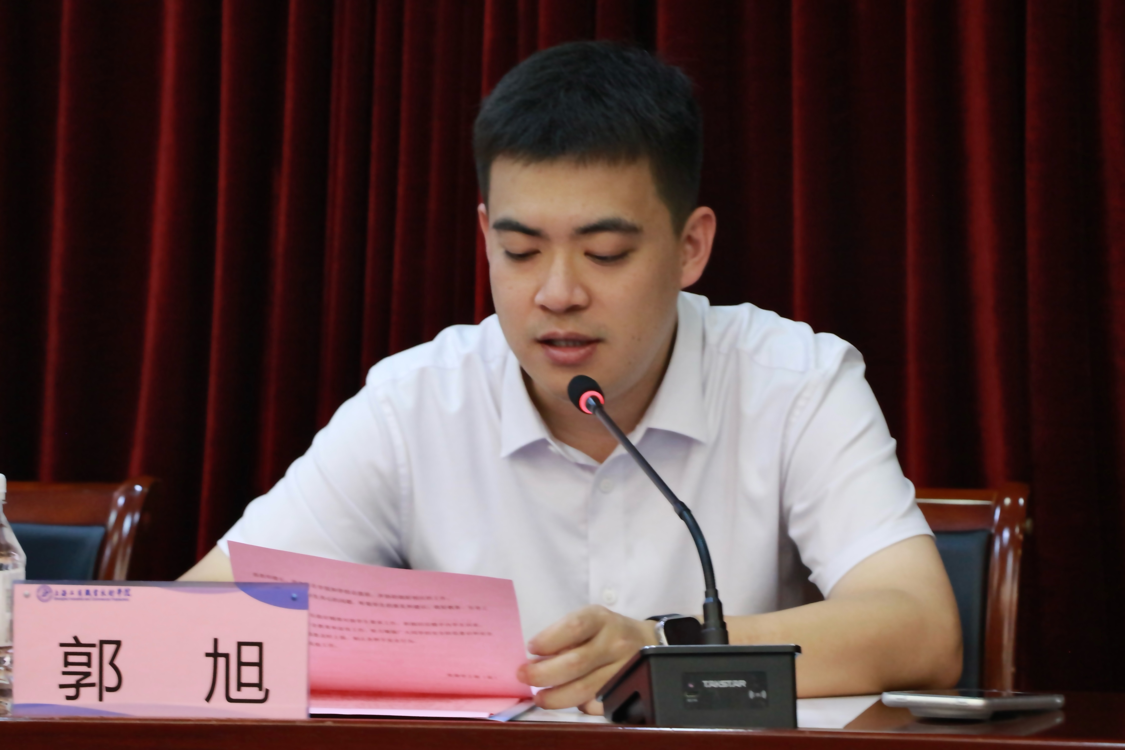 首先,郭旭介绍了学校“一站式”学生社区教师楼长、副楼长的岗位职责,明确了其在学生社区管理、服务与育人工作中的重要角色。