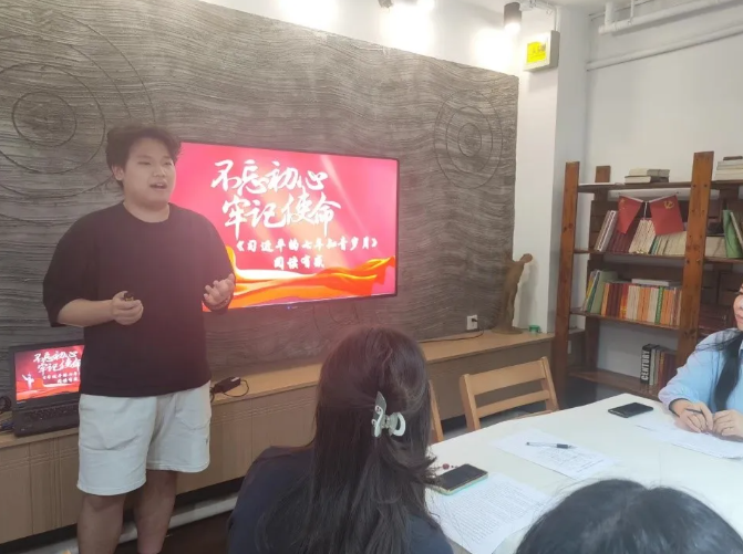 第二组是学生第一党支部的发展对象贾百琴同学,她以引人入胜的方式概述了《牛虻》一书的内容,并深入探讨了书籍的深层意义。贾同学还巧妙地将五四运动与书中的“革命”与“民主”主题相结合,为听众带来了新颖的思考视角。