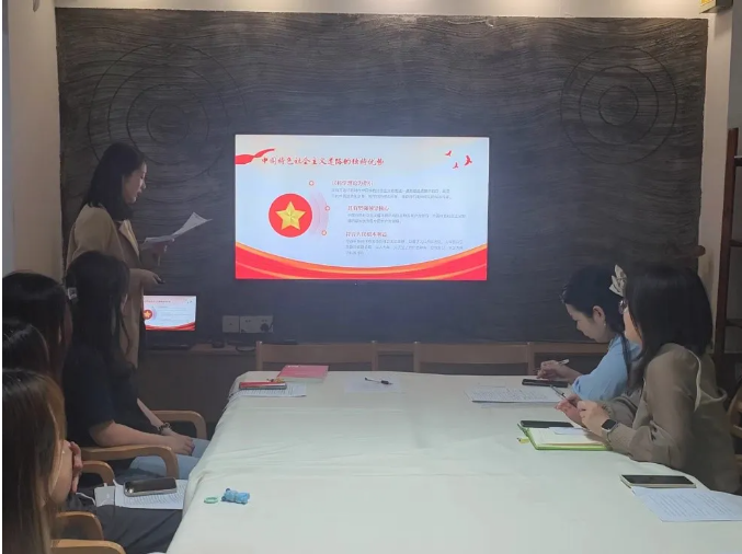 第三组是来自学生第三党支部的发展对象潘怡菁与梁琦雪同学,她们以“自信筑梦 复兴青春”为主题,分享了《青年的力量》这本书的精髓,详细阐述了对于四个自信的深刻理解,并强调了青年在国家与民族未来中所承担的重要角色与责任,激励在场的每一位青年为国家的繁荣和民族的复兴贡献自己的力量。
