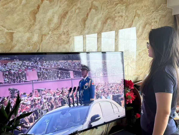 正在浙江嘉兴开展暑期社会实践的新一届团学骨干们集中收看阅兵直播。整齐的方阵、先进的武器装备让同学们深刻感受到抗战胜利的伟大意义和当今国家的繁荣强盛。同学们一致表示,伟大抗战精神是中国人民弥足珍贵的精神财富。新时代青年要以史为鉴、奋发图强,把爱国之情转化为实实在在的行动,把个人理想融入党和国家事业,把学习成果转化为在科技创新、乡村振兴、绿色发展、社会服务、卫国戍边等各领域各方面的生动实践,在中国式现代化建设的伟大实践中书写青春篇章。