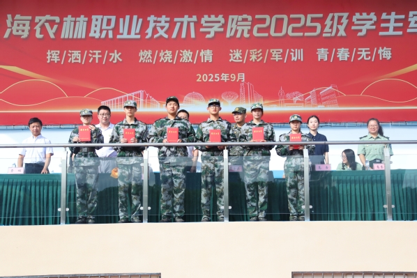 邵阳代表学院向承训单位赠送锦旗,感谢其为新生国防教育付出的辛勤努力。高杏宣读了军训先进集体与个人的表彰决定,获奖代表依次上台接受表彰。