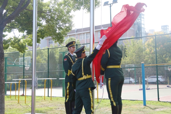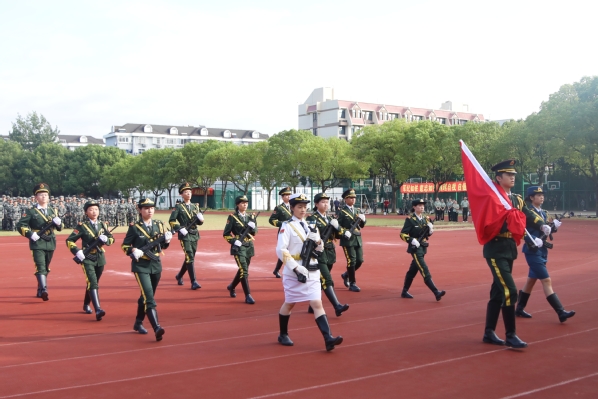 上午八点,学院田径坪上口令嘹亮、脚步铿锵。国旗护卫队迈着整齐划一、铿锵有力的步伐入场,在激昂的国歌声中,五星红旗冉冉升起,结营仪式正式拉开帷幕。