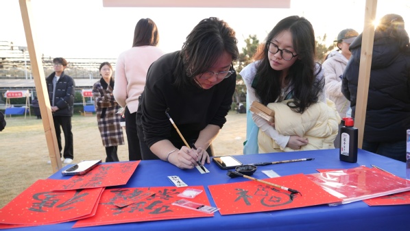 随着舞龙鼓乐的铿锵节奏,“新春乐游会”正式拉开帷幕。市集以“农味+非遗”为特色,精心设置糖画制作、手工棉花糖、拓印、写春联、投壶、糖葫芦DIY等20余个互动摊位,师生们自由穿梭、动手体验,在传统民俗中感受中华优秀传统文化的魅力,收获满溢新春气息的独特记忆。
