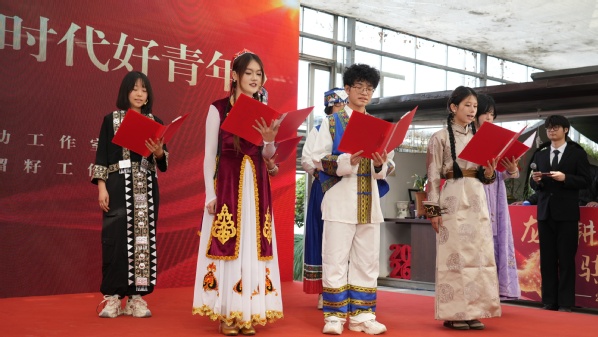 文艺展演环节充满了“农”味和“情”味交织碰撞。田山歌《农耕歌谣》用质朴的唱腔勾勒出春耕夏耘、秋收冬藏的农耕画卷,让师生在乡音中感受农业文明的厚重底蕴;舞蹈《歌舞天山》展现多元文化交融之美,传递各民族学子携手成长的温暖情谊;戏曲《戏韵流芳 文脉赓续》以经典唱段串联古今,让中华优秀传统文化在师生心中扎根;朗诵《我们是新时代好青年》则以铿锵有力的语调,抒发青年学子在资助关怀下勇担使命、逐梦前行的壮志豪情。一场视听盛宴,既是文化的传承,更是资助育人成果的生动展现。