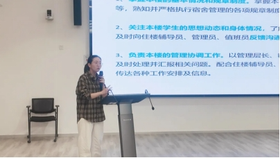 园区中心相关老师从“基本情况”“浸润式教育”“精细化管理”“人性化服务”四个版块对我校“一站式”学生社区建设进行了全面的介绍,特别从育人空间、育人平台、特色活动等方面生动展示学生社区中的育人工作。同时,重点解读了《上海师范大学学生宿舍管理规定》及楼长工作职责,鼓励楼长们肩负起楼长责任,共筑有温度、有活力、同成长的“一站式”学生社区。