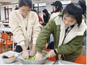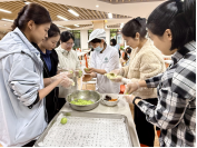 青团制作现场暖意融融,艾草的清香与水磨糯米的软糯气息交织萦绕,满是春日的生机与烟火气。食堂师傅们提前准备好艾汁、糯米粉、馅料等,细致地讲解制作技巧,同学们围坐在一起动手实践,搓圆、包馅、塑形,在欢声笑语中亲手完成了自己的专属青团。蒸熟的青团色泽青翠,艾香与内馅香气四溢,大家品尝美味的同时,沉浸式感受其中的文化内涵,将春日的美好与传统的温情,藏进这一枚枚青糯之中。