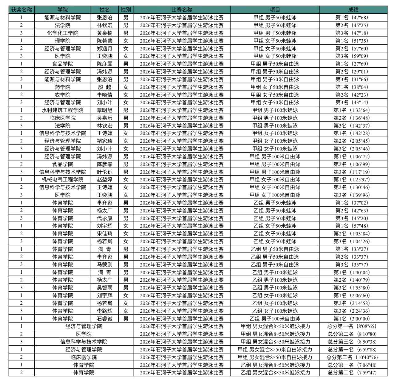 3月29日,石河子大学游泳馆内热闹非凡,首届学生游泳比赛在此开赛。作为学校“健康筑基 书香沁润”主题系列活动的一环,此次比赛由校体育运动委员会主办,体育学院协办,吸引众多师生前来观赛。