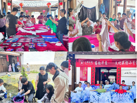 当"一站式"社区的文化墙遇上非遗瑰宝,碰撞出的是年轻化的传承路径。艺术与设计学院"客韵华裳·非遗薪传"实践队在沙县古街架起染缸,社区工作坊里反复练习的蓝染技艺此刻化作流动的非遗课堂。靛蓝的围身裙、孩童的刺绣肚兜在古街上铺展,社区讨论中萌生的"非遗+现代设计"理念,让传统纹样重获新生。