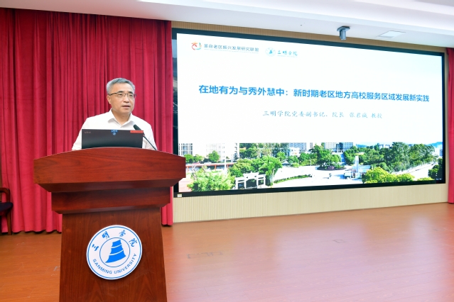 革命老区振兴发展论坛上,临沂大学党委书记王焕良,皖西学院党委书记袁维海,延安大学党委副书记吕达,遵义师范学院党委副书记周晶,中国人民大学教授仝志辉,三明学院党委副书记、校长张君诚分别作《发挥红色文化资源优势 擦亮革命精神育人特色品牌》《红色铸魂 绿色赋能 聚力共绘革命老区振兴发展新篇章》《聚焦服务意识和能力提升 建设校地融合发展示范校》《深耕红色沃土 培育“红心”青年》《永泰探索:县域乡村振兴咨询服务与研究生人才培养的有机结合》《在地有为与秀外慧中——新时期老区地方高校服务区域发展新实践》主题报告。