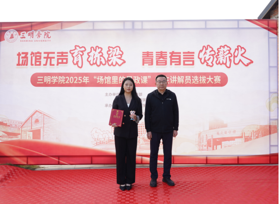 历时两个月,三明学院首届“场馆里的思政课”学生讲解员选拔大赛在12月落下帷幕。12月19日上午,一场别开生面的颁奖仪式在三明学院北区中国高校抗战迁徙陈列馆门前举行。本次大赛依托“一站式”学生社区实现活动全流程线上线下联动,成为学校深化思政育人与服务青年成长的创新实践。校党委廖景榕副书记出席颁奖仪式,党政办、组织部、宣传部、学生处、教务处、团委、图书馆、马克思主义学院相关负责人一同见证了荣耀时刻。