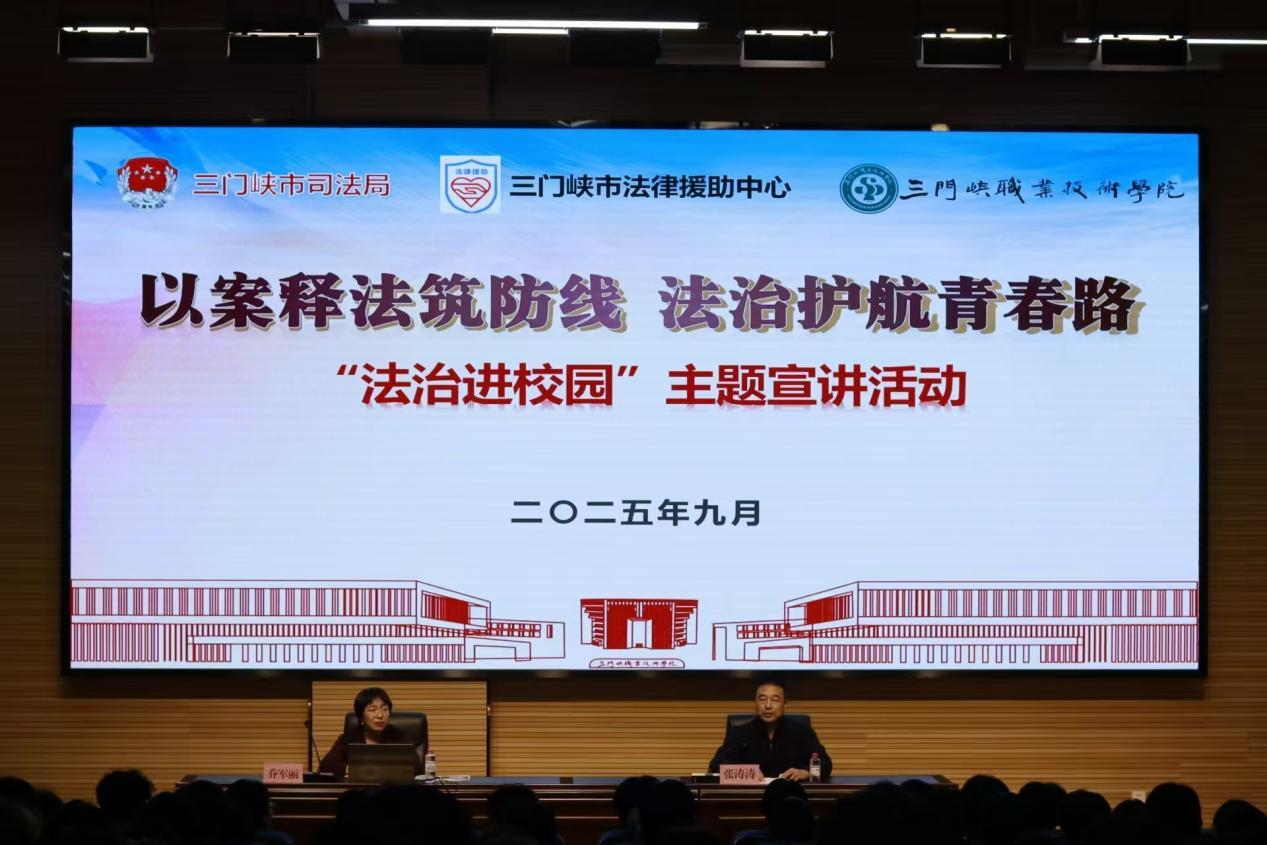 为切实提升同学们的法治意识和自我保护能力,9月22日-26日,学院联合三门峡市司法局、三门峡市法律援助中心,连续举办五场“法治进校园”专项宣传活动。本次讲座聚焦学生最关心的电信网络诈骗、“校园贷”陷阱以及“帮信罪”等热点问题,通过专业宣讲与互动答疑,为同学们送上了一堂堂贴近校园生活的“法治必修课”。学院2025级新生全体宿舍长共计1000余人参加了本次活动。