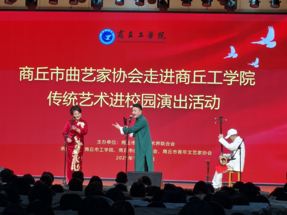 为让具有悠久历史的传统曲艺走进青春校园,让同学们近距离感受中华优秀传统艺术的魅力与温度,10月30日下午,由商丘市文学艺术界联合会主办,商丘工学院、商丘市曲艺家协会、商丘市青年文艺家协会共同承办的传统艺术进校园演出活动在商丘工学院举行。