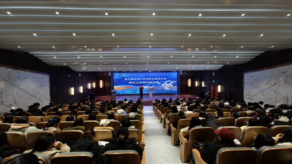 为加强学生职业生涯教育和就业指导,增强大学生职业规划意识,及早做好就业准备,以择业新观念打开就业新天地,12月25日下午,由就业与发展联络处主办、教务处、学生工作处、校团委、各二级学院和书院社区、大学生就业与发展联合会协办的第三届全国大学生职业规划大赛商丘工学院校赛决赛在应天讲堂举行。校领导石培哲、丁艳红、王峰,相关职能处室负责人,各二级学院院长、副院长,书院社区分党委书记、分团委书记、指导老师代表、辅导员代表、学生代表等200余人现场观摩了比赛。比赛由刘启阳和赵玉涵主持。