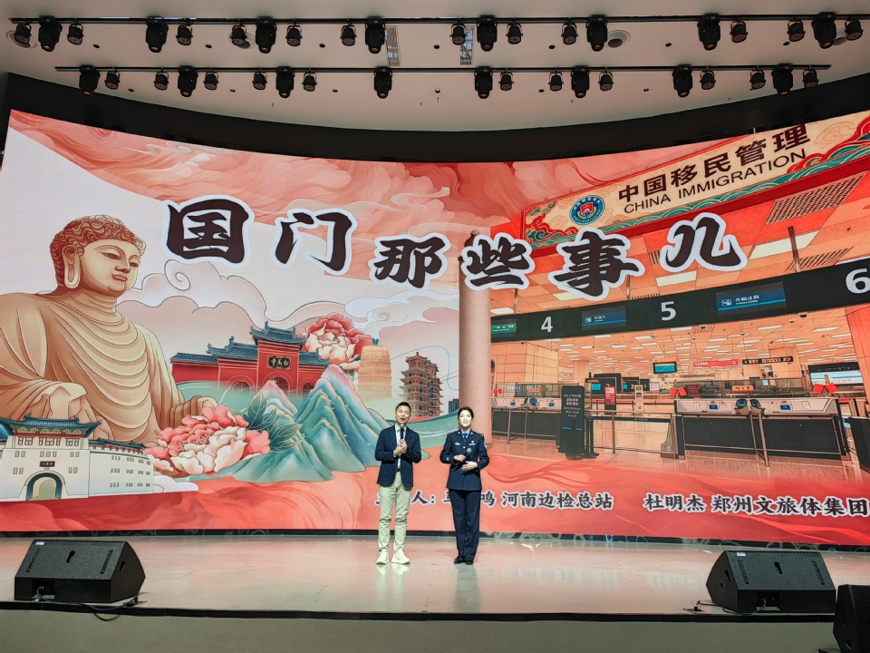 河南出入境边防检查总站的马思明与郑州市文旅集团的杜明杰两位宣讲达人带来脱口秀《国门那些事儿》。他们以“边检员+文旅从业者”的独特组合,通过鲜活的国门故事与文旅案例,诠释党的二十届四中全会“以开放促发展”的部署要求,展现河南对外开放的包容姿态与发展底气。