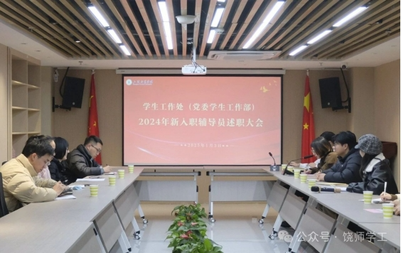 为加强辅导员队伍建设,提升学生工作质量,了解新入职辅导员工作状况。2025年1月3日,上饶师范学院学生工作处(党委学生工作部)在一站式学生社区多功能会议室召开了2024年新入职辅导员述职会议。学生工作处(党委学生工作部)处(部)长李杨出席并讲话,学管科负责人李英华主持会议,新入职辅导员全体参会。