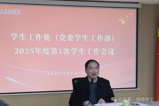 2025年1月9日下午,学校在一站式学生社区多功能会议室召开寒假前后2025年度第1次学生工作会议,总结2024年度学生工作,就假期学生安全稳定和教育管理工作进行部署。校党委委员、副校长李永明出席并讲话。各二级学院党委副书记、学工处全体干部参加会议。