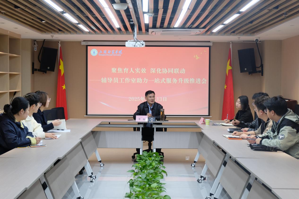 11月13日下午,学生工作处(党委学生工作部)在“一站式”学生社区召开学校辅导员工作室建设推进会。学生工作处(党委学生工作部)处(部)长李杨出席会议并讲话,学生工作处(党委学生工作部)副处(部)长袁丽芳主持会议。