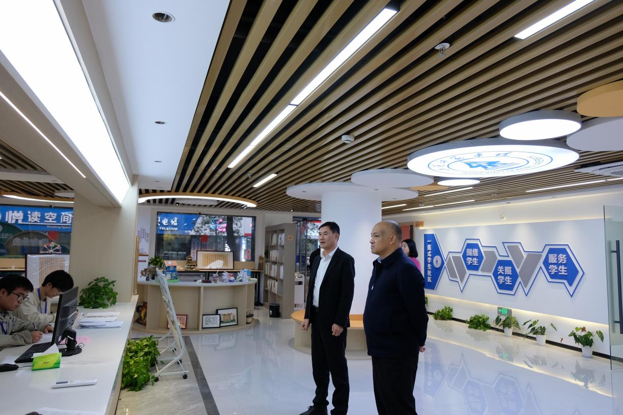 11月29日下午,省委教育工委宣传部部长、省教育厅社政处处长王宣海莅临学校调研指导一站式学生社区建设。校党委副书记江光亮,党委委员、党委宣传部部长牟玉华等陪同调研。