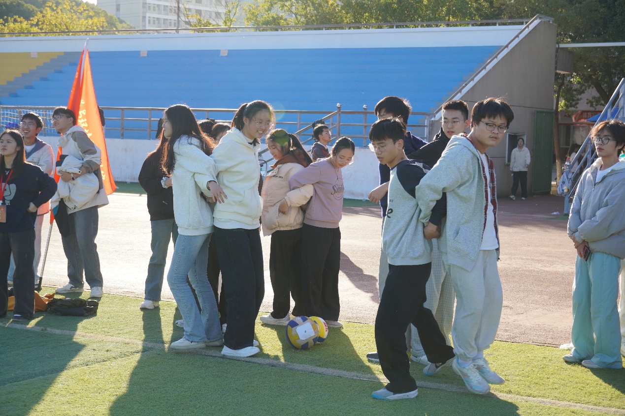 在“气排球传球”项目中,队员们屏息凝神,手腕轻抖,将排球稳稳地传送给队友,展现了出色的球感与团队默契。“齐心协力”则是步调一致的考验,各队队员高喊着口号,相互扶持,共同冲向终点。“投箭壶”比赛现场安静而紧张,每一次精准的投掷都能引来一片喝彩。而作为压轴大戏的“拔河”比赛,更是将全场气氛推向高潮,老师与学生一同参与其中,力量的对抗与坚韧的呐喊一同迸发,尽显团结精神。