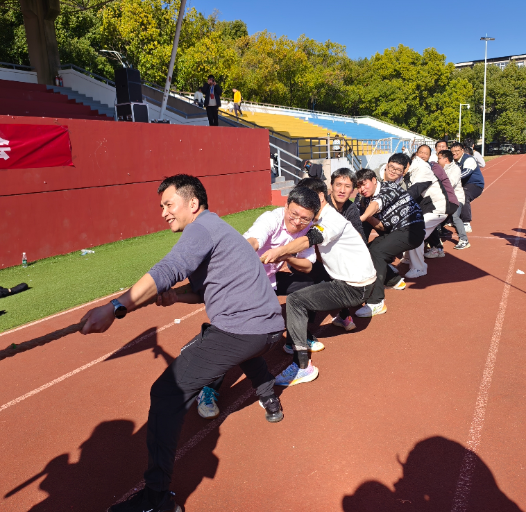 运动会的又一高潮来自教师组的惊喜亮相。在专门设置的教师组“气排球传球” 和“拔河”比赛中,平日辛勤耕耘于讲台的老师们纷纷走上赛场。气排球在老师们手中稳健传递,技巧娴熟;拔河时,老师们更是全力以赴,拼尽全力,场下的学生们化身为最热情的啦啦队,为敬爱的老师加油助威,震天的“加油”声将全场气氛推向顶点。师生同乐的温馨场面,充分展现了化环学院和谐融洽的大家庭氛围。