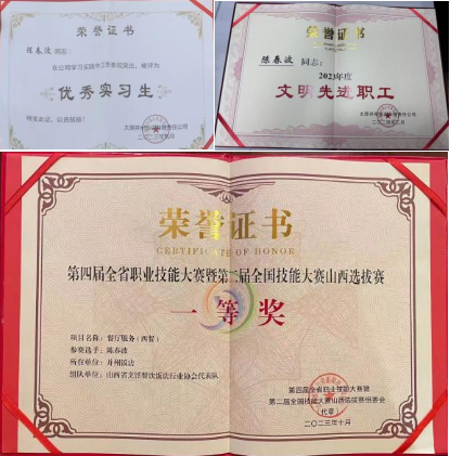陈春波,2022年7月进入并州饭店实习,2023年7月转为正式员工并工作至今,期间,工作认真,踏实肯干,虚心好学,团结同事,不怕苦、不怕累,能够灵活运用专业知识解决工作中的实际问题,得到了企业领导和同事的一致好评。他勇于担当、甘于奉献,疫情期间坚守在抗疫一线,在经风雨中壮筋骨,在见世面中长才干。先后荣获“优秀实习生”“2023年度文明先进职工”荣誉称号,并在第四届全省职业技能大赛暨第二届全国技能大赛山西选拔赛中荣获一等奖。