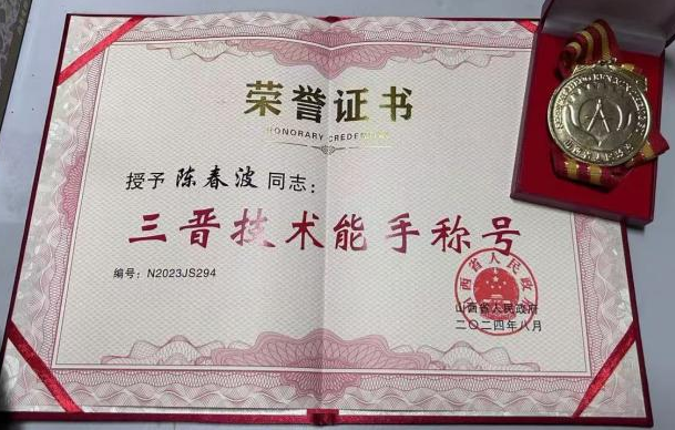 近日传来喜讯,我院2023届毕业生陈春波荣获山西省人民政府授予的“三晋技术能手”光荣称号。