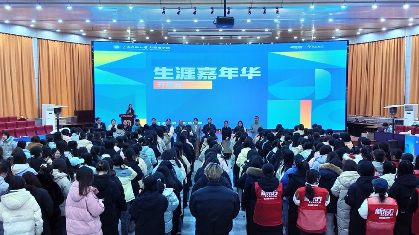 11月26日,外国语学院联合新正苑“一站式”学生社区3号楼(北)临时党支部主办、山西新东方前途出国咨询有限公司协办的首届“语通世界·职启新程”生涯嘉年华圆满落幕。本次活动吸引600余名学生热情参与,学院领导、专职辅导员、毕业班班主任及企业嘉宾出席开幕式。