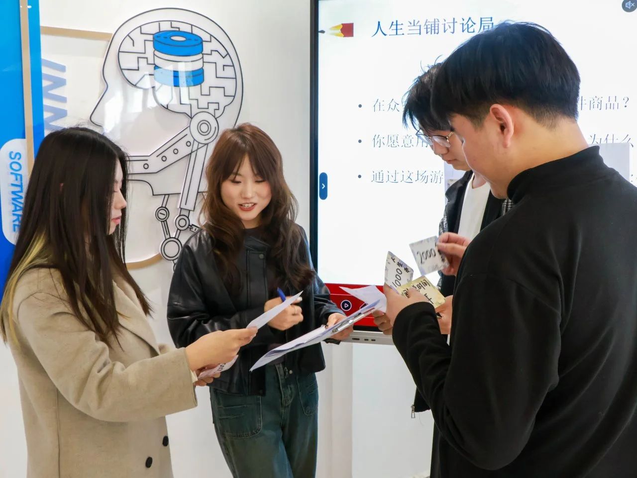随后的“人生当铺”游戏将读书会推向高潮。参与者需用“人生币”、“团队健康值”等虚拟资源,兑换“内心的平静与自由”、“自我实现的梦想”、“家人的理解与支持”等成长能量卡,体验真正人生抉择。当参与者完成兑换,一场关于成长与价值的交流热烈展开,同学们踊跃发言,分享自己在游戏中的感悟。这场游戏不仅为活动增添了趣味性,更以独特的方式,促使参与者深度思考人生的意义与价值,明晰成长方向,实现从理论到生活的反思,收获深刻的人生启迪 。