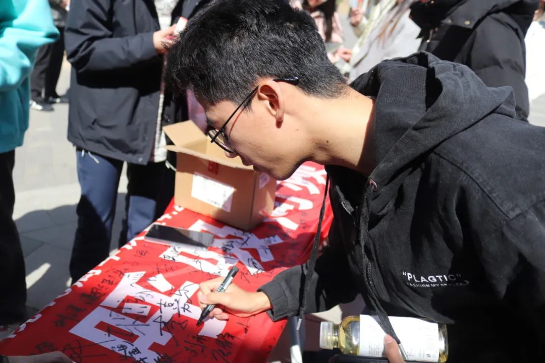 签下自己的名字,送上诚挚的祝福,师生们以热情为地球献上一份真挚的礼物,我们以敬畏为笔,以行动为墨,在蔚蓝星球上续写"绿满山川白满川"的永恒诗篇。